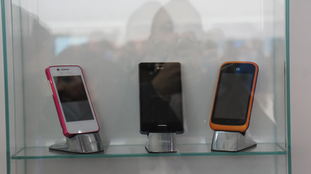 Entretanto, andando pela feira, só dá para ver/mexer/usar os aparelhos da ZTE (Open) e da Alcatel One (Touch Fire). Os modelos da LG e Huawei estão em uma vitrine no estande da Telefônica.
