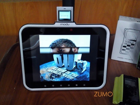 O Modu é complementado pelas capinhas (chamadas de “jackets”) que oferecem câmera digital, porta-retratose outros. O Modu usa o sistema operacional Brew, da Qualcomm (que é investidora da Modu, por sinal). Tem 2 GB de memória interna, Bluetooth e tocador de MP3.
