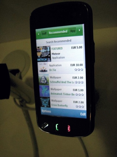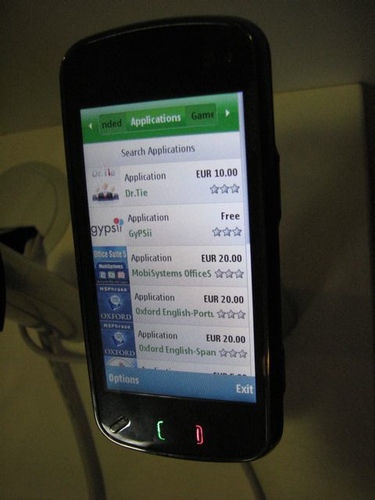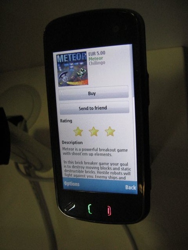 Eu naveguei na Ovi Store em um Nokia N97 na área de exibição do NDS2009 (sim, o N97 é BEM mais rápido que o 5800 em processamento, mas não vou falar mais nada pra não deixar todo mundo com vontade de largar o 5800 – incluindo este que vos escreve – e deixar as calças na loja pra comprar um N97 quando sair). A navegação é bastante intuitiva: abra o aplicativo e veja inicialmente os destaques à venda, e navegue entre as seções e categorias (games, aplicativos, músicas, vídeos etc).