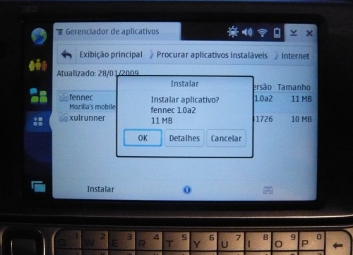 1) Instalação: rápida, sem problemas. Pela conexão Wi-Fi do N810, fui ao site da Mozilla e baixei o Fennec. Instalei junto aos aplicativos de internet do tablet.