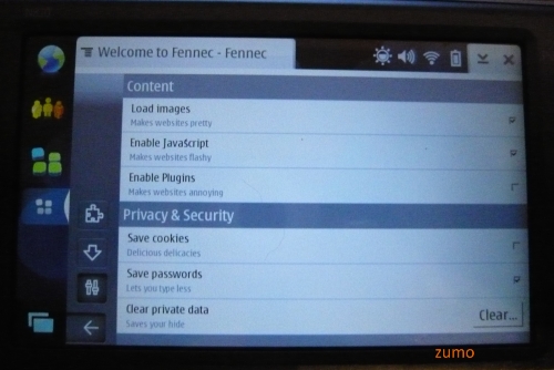 Como estou com um N810 dando sopa, resolvi contrariar as regras do Nagano (“você é louco de instalar software alpha!“) e, depois do clique, mostro telas e algumas conclusões rápidas sobre o Fennec para matar a curiosidade.