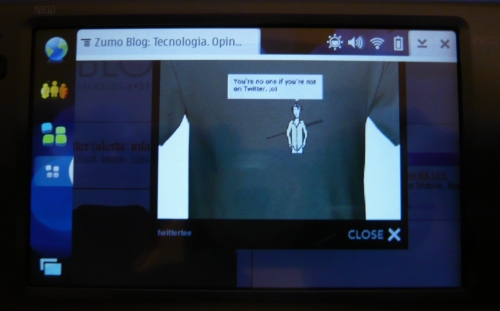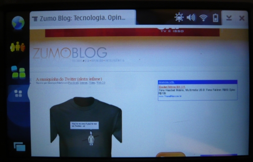 4) Velocidade: é software no início da sua fase de testes ainda, bem mais lento que o navegador padrão do N810 nas respostas ao toque na tela; nem todas as fontes renderizam direito e o Fennec vem “pelado”, sem nada adicional habilitado (YouTube, por exemplo, não funciona ainda). Gostei bastante que o Fennec responde a alguns plug-ins do WordPress, mostrando a imagem em um pop-up quando tocada.